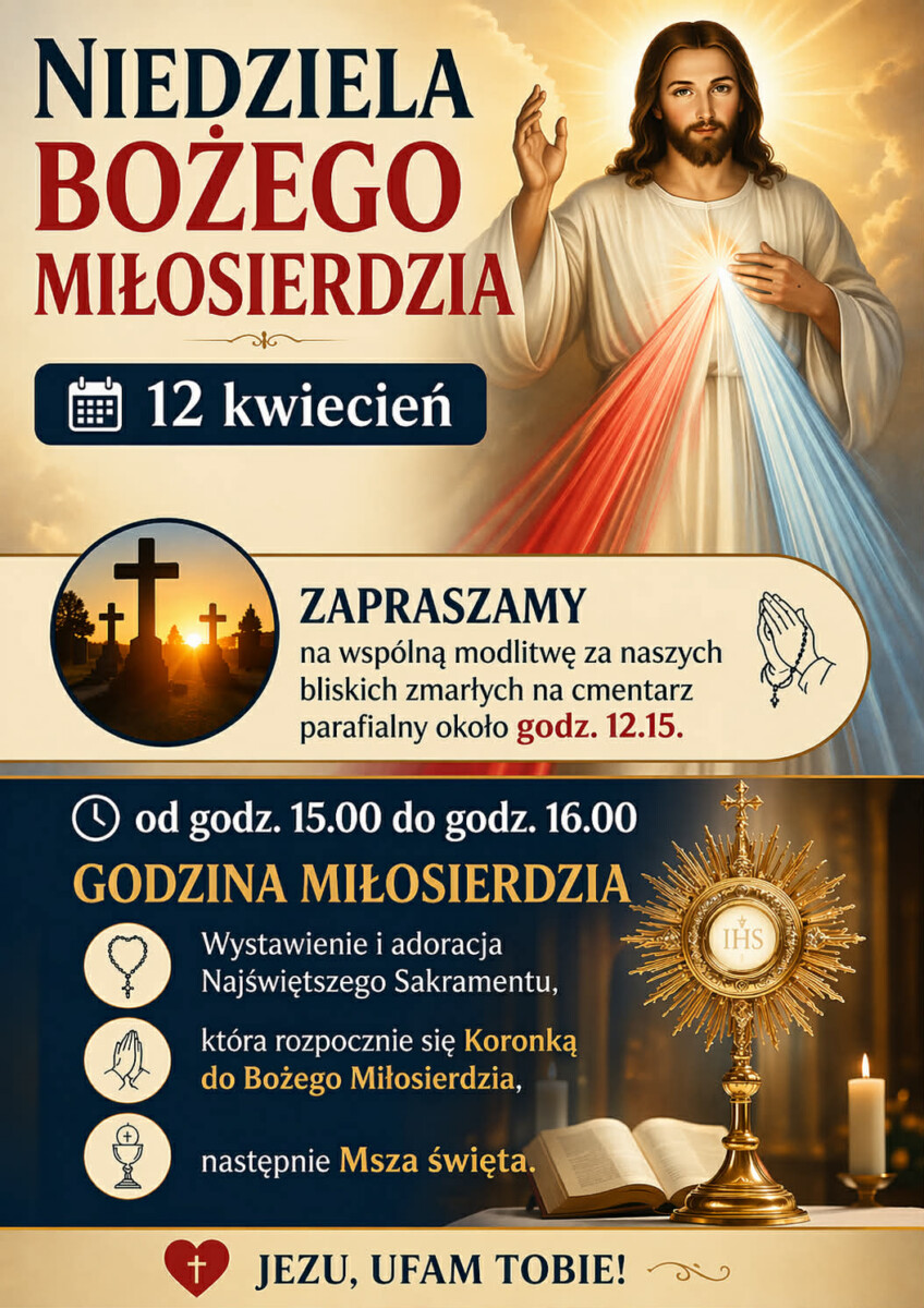 Pielgrzymka do Sanktuarium Bożego Miłosierdzia i Św. Jana Pawła II w Krakowie i Wadowic 15.10. 2022r. (sobota) Wyjazd o godz. 5.00 z parkingu przy kościele, powrót późnym wieczorem. W planie: Msza Św. w Sanktuarium...
